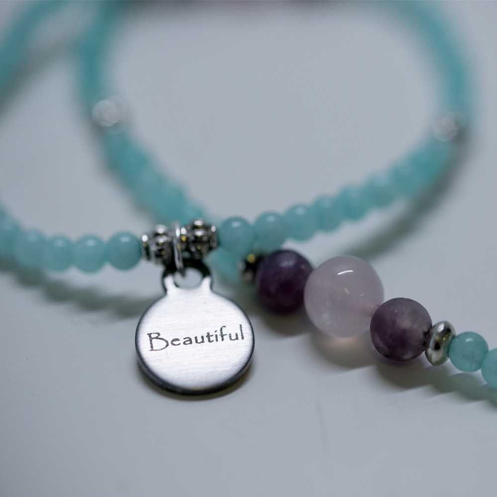 The gemstones that make up the You are Beautiful series are Aquamarine, Pink Tourmaline, and Rose Quartz.